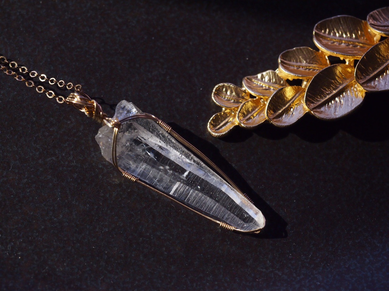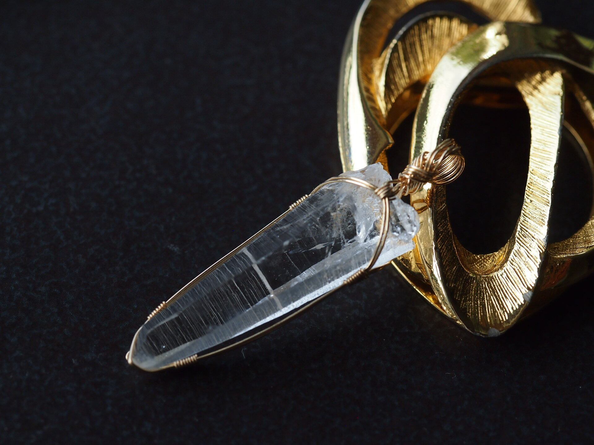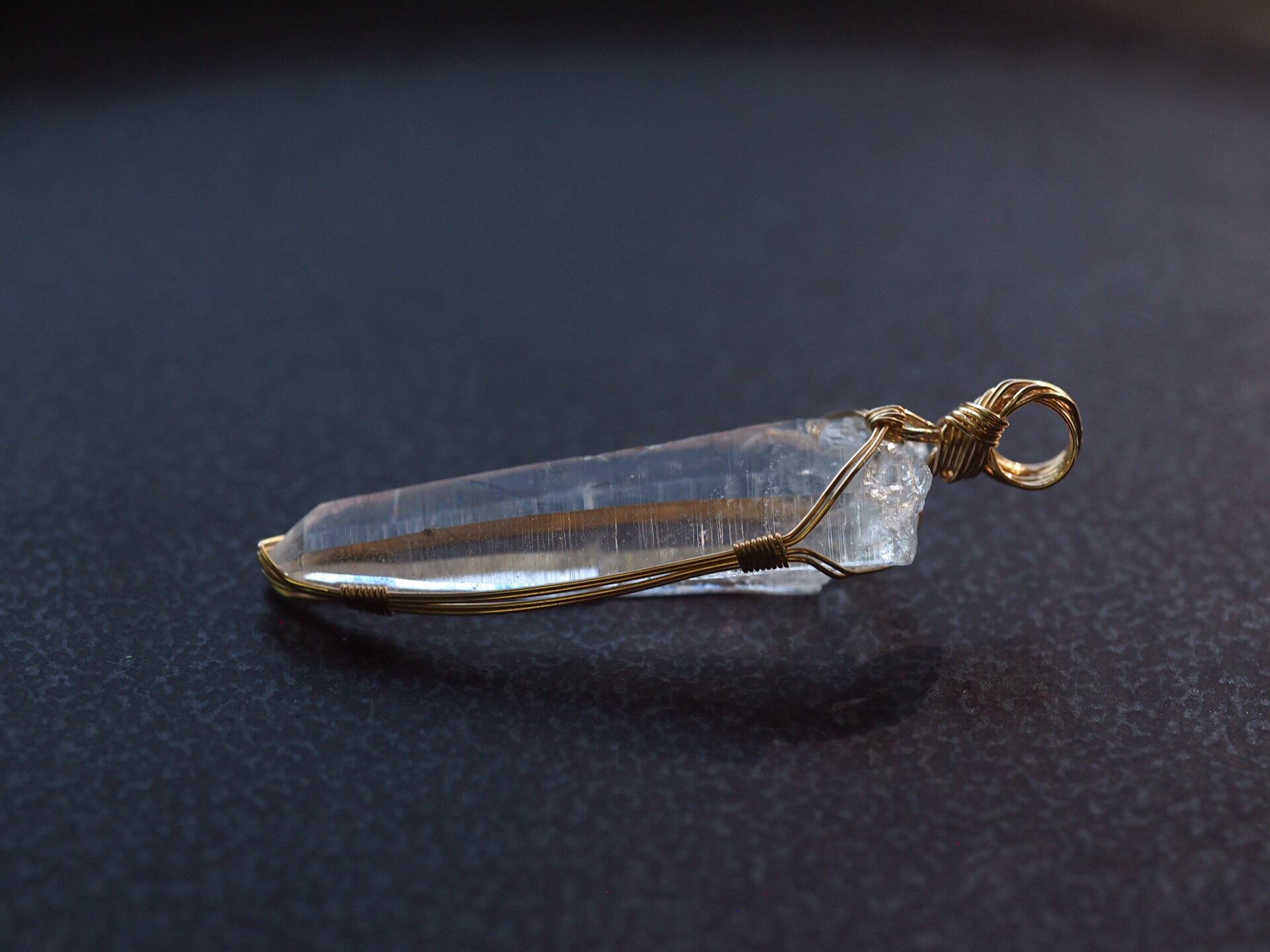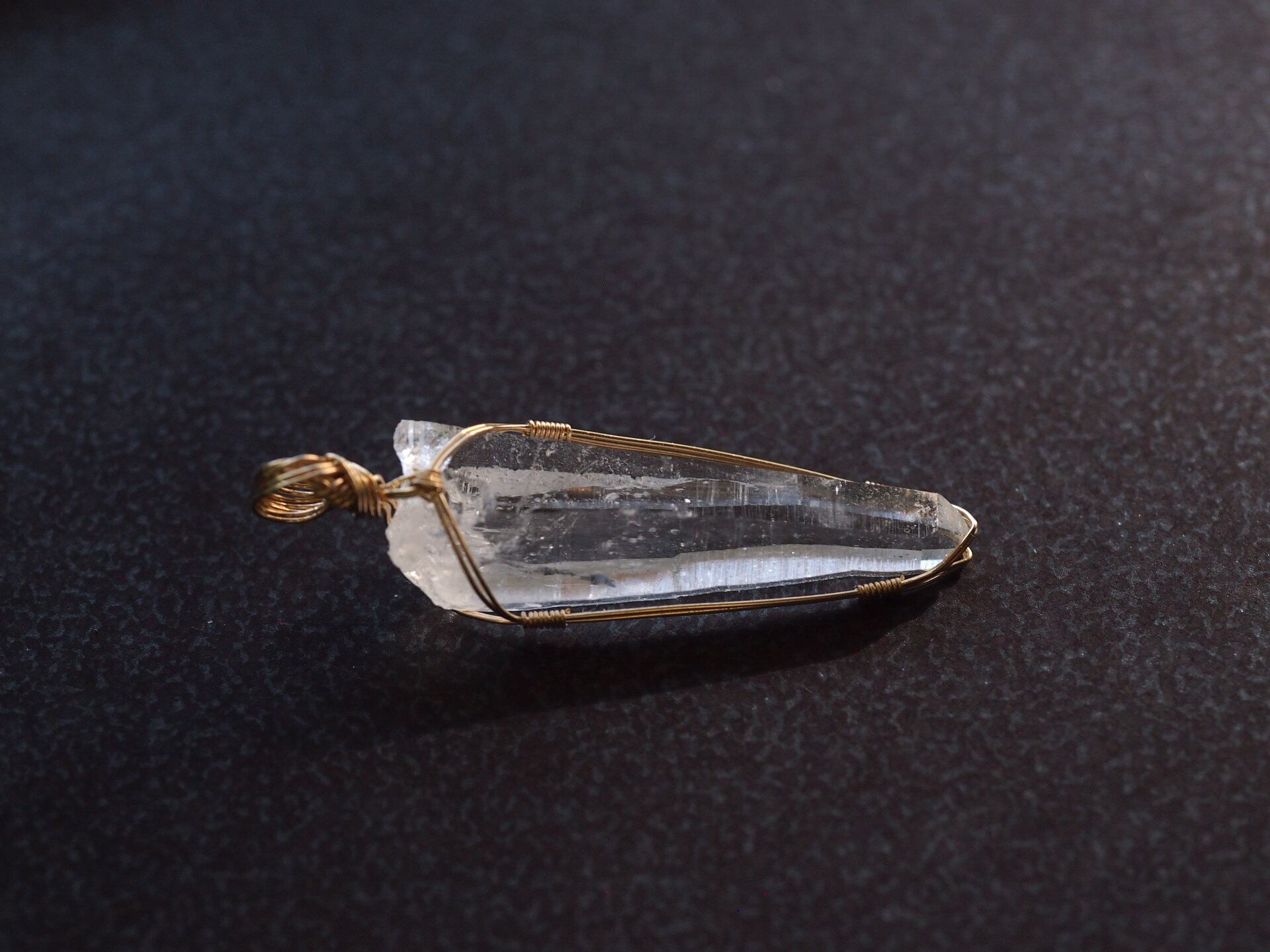 美しい国産水晶を14kgfワイヤーで繊細に女神巻きペンダントトップに仕上げました♡