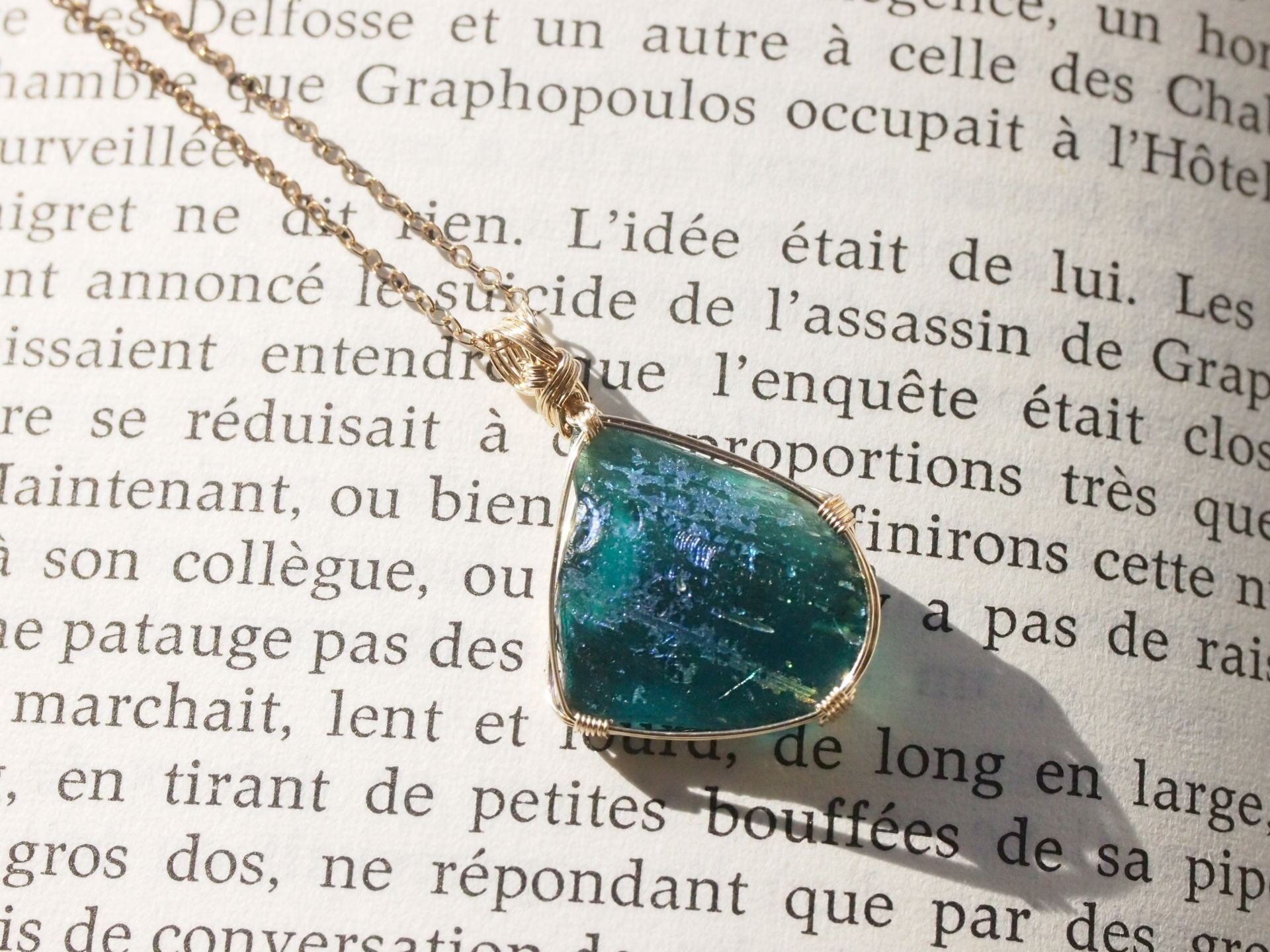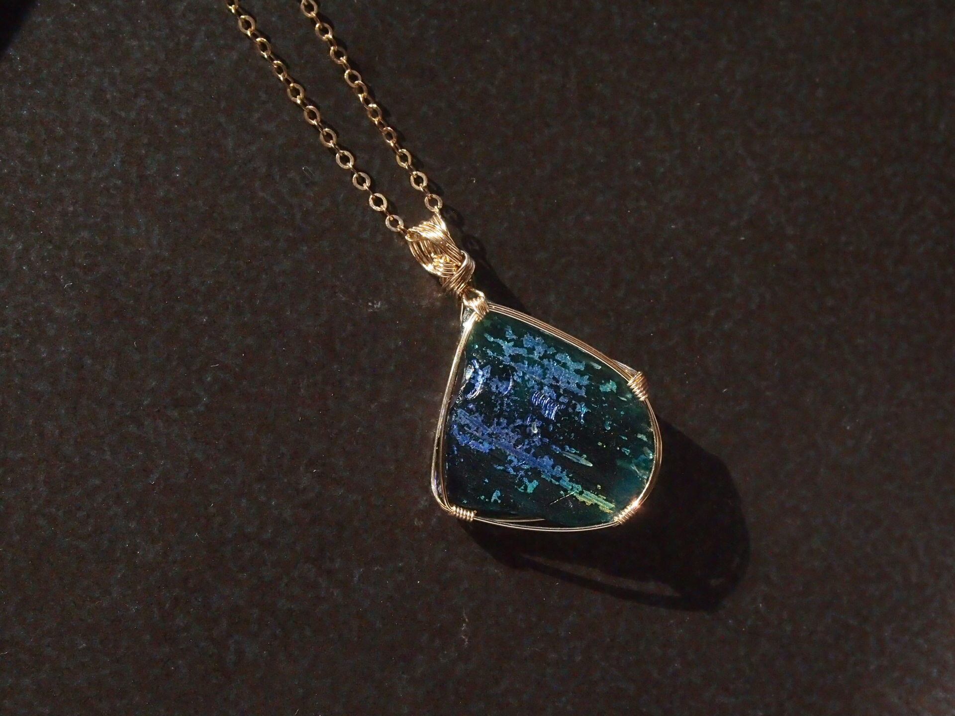 ローマングラスを14kgfワイヤーで繊細に女神巻き®ペンダントトップに仕上げました♡