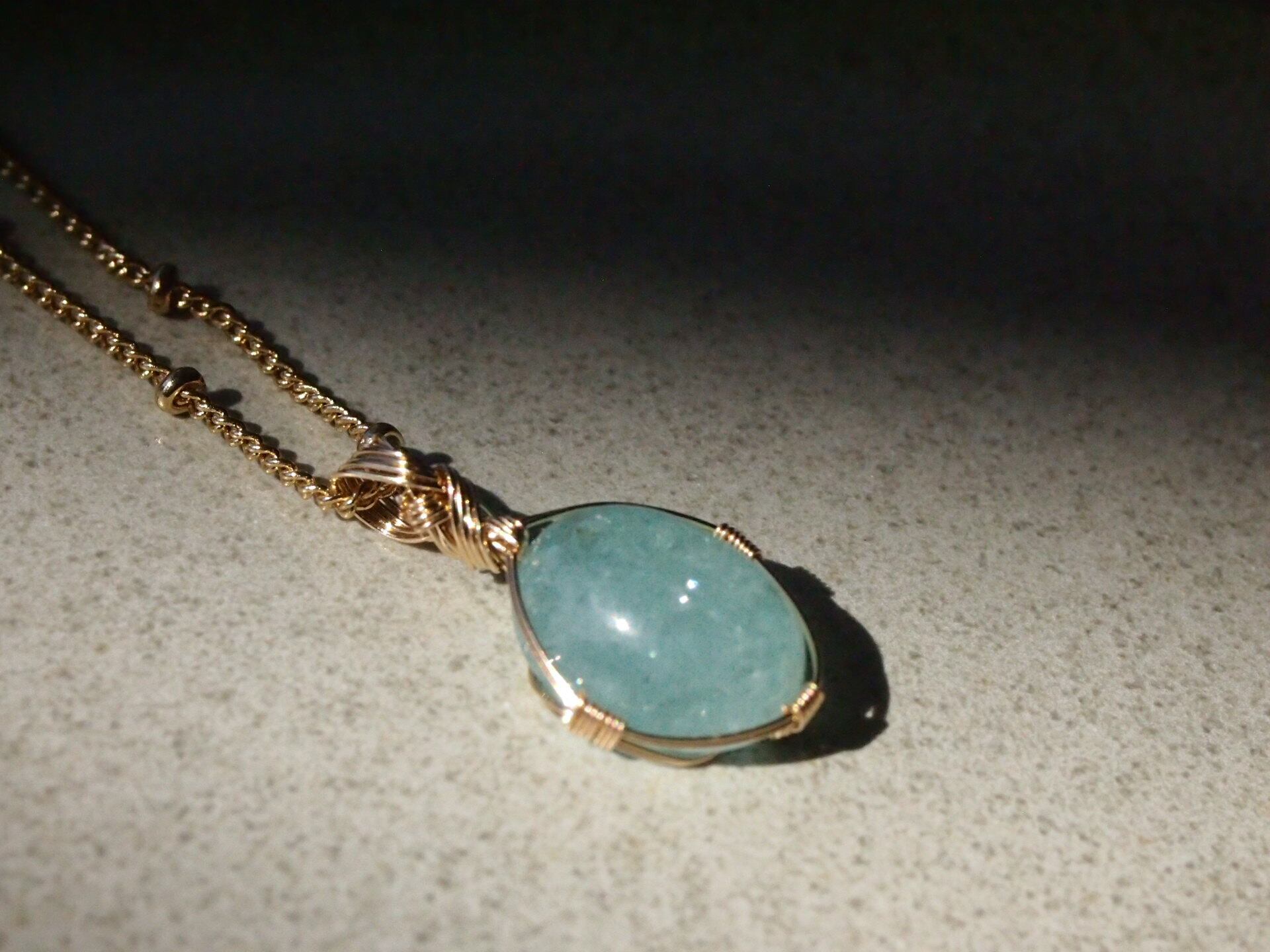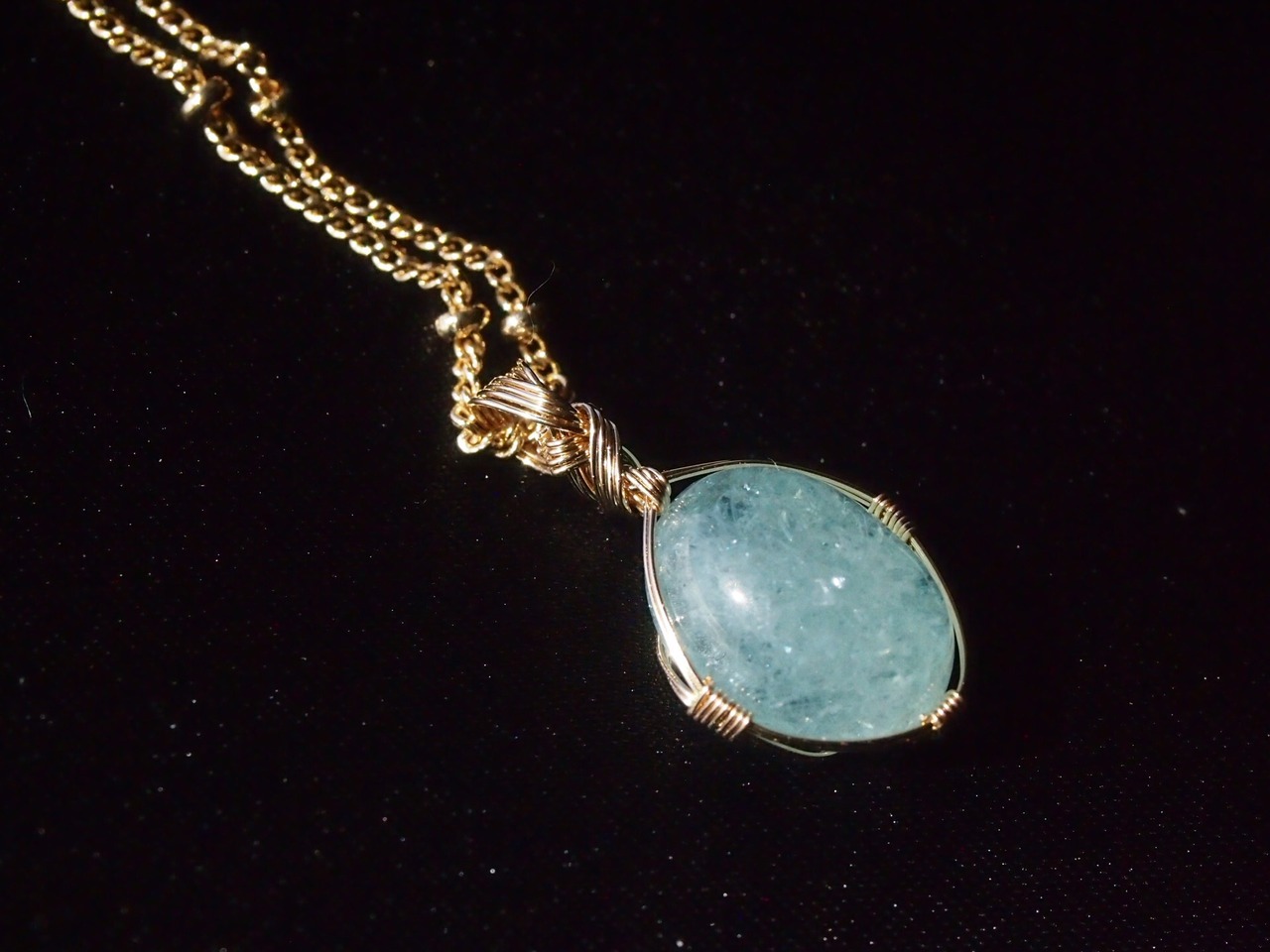 カボションカットアクアマリンの女神巻き®ペンダントトップ