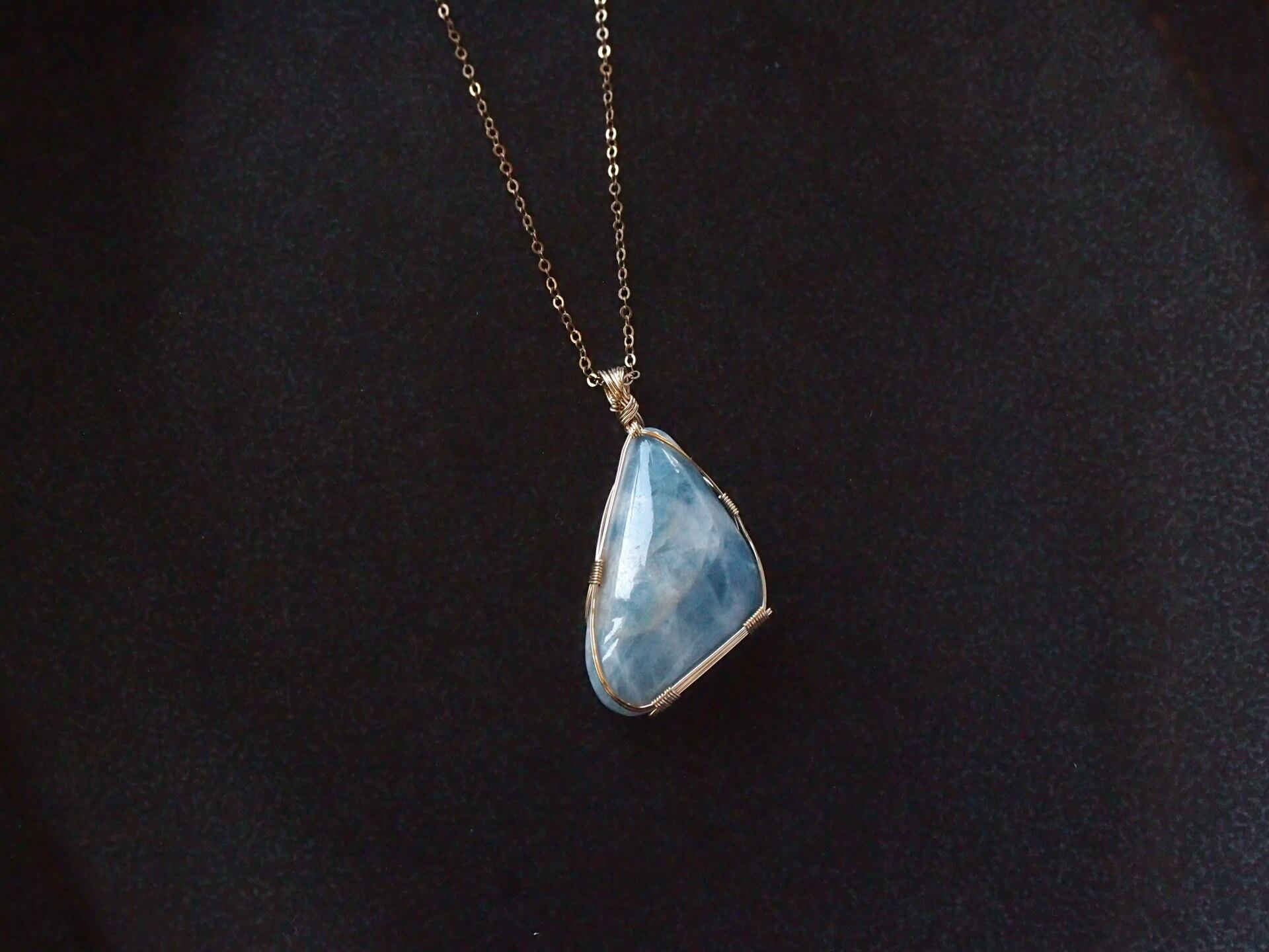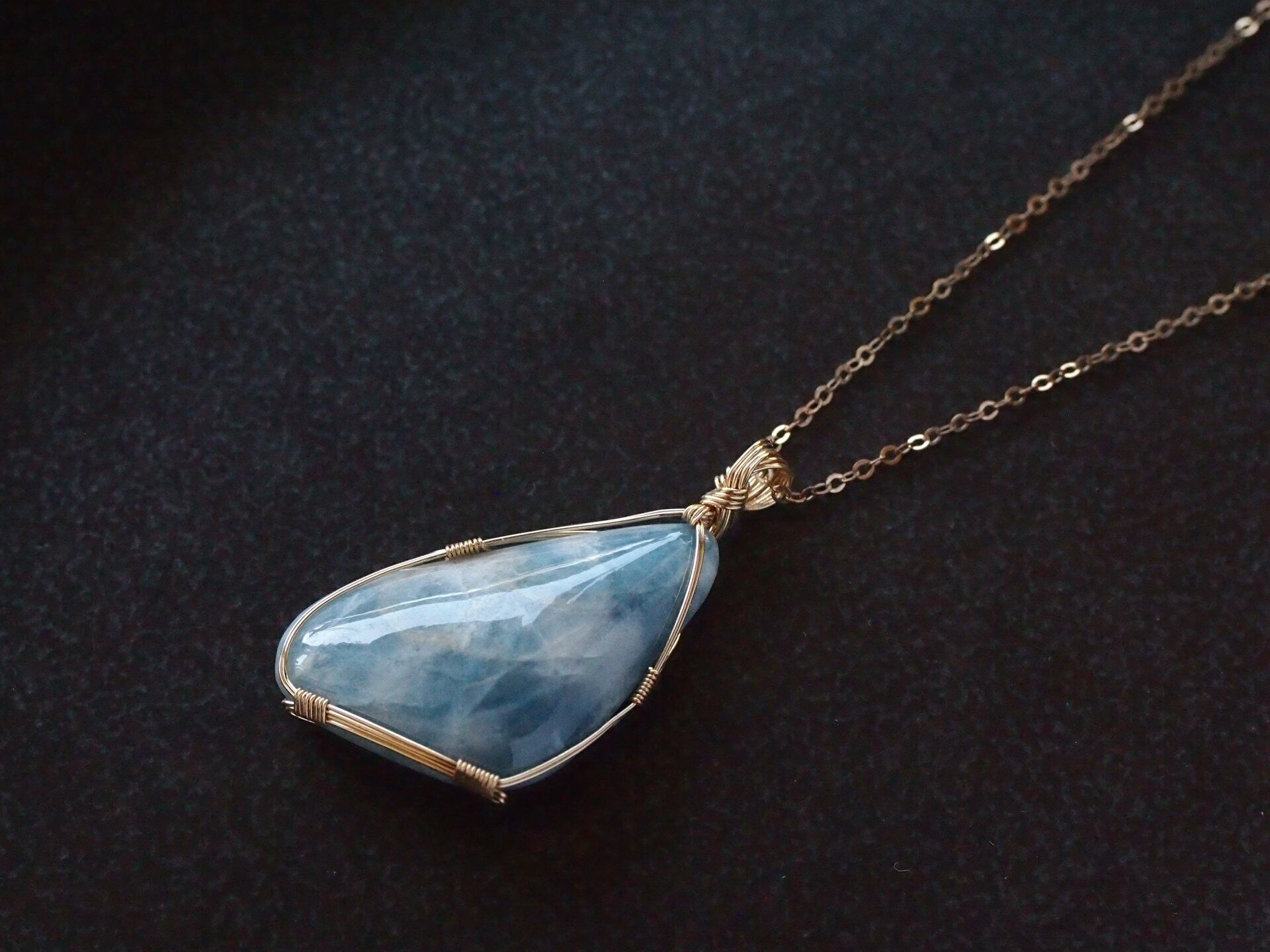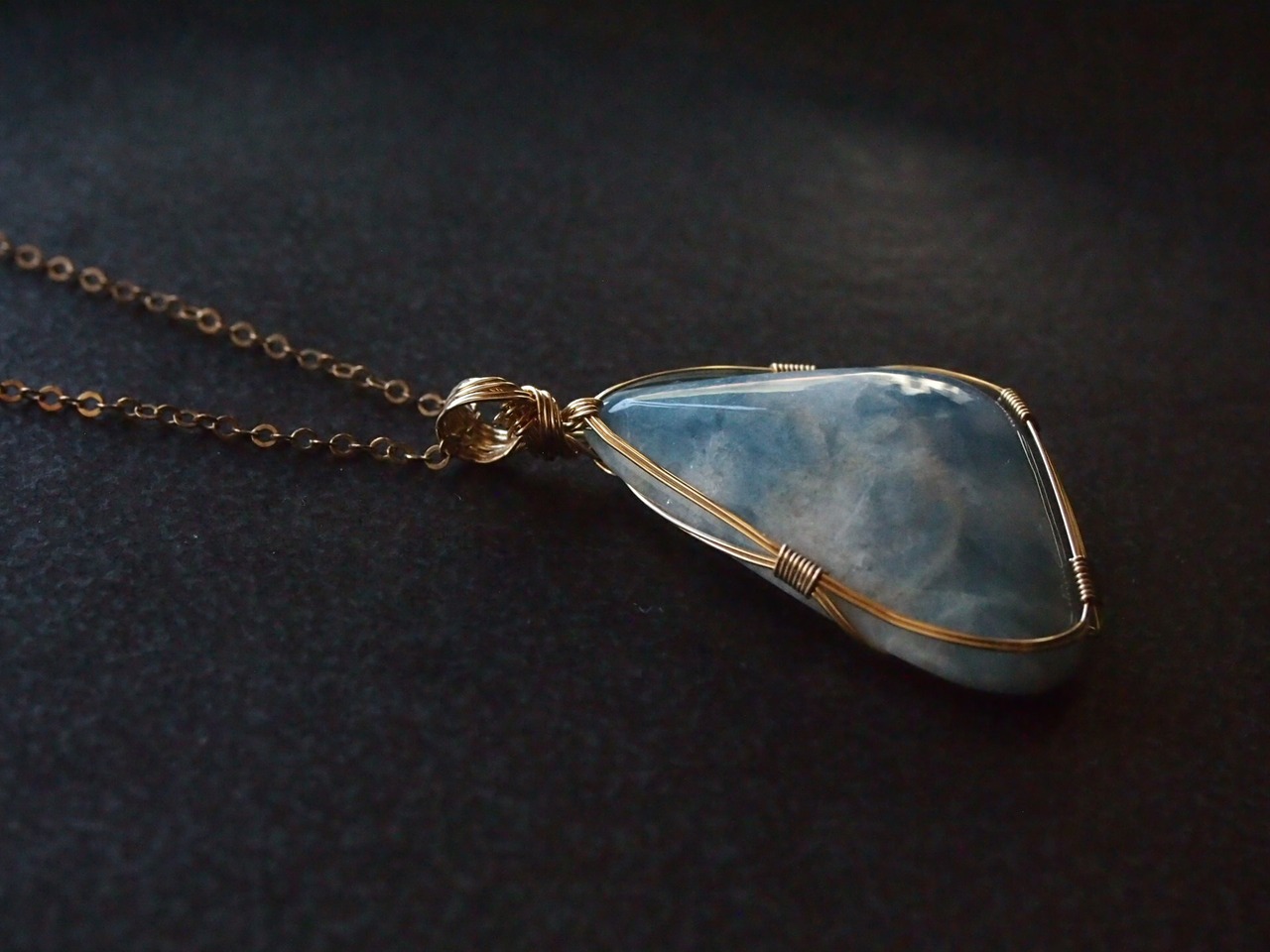 コン沢産の貴重な青翡翠を14kgfワイヤーで繊細に女神巻き®ペンダントトップに仕上げました♡