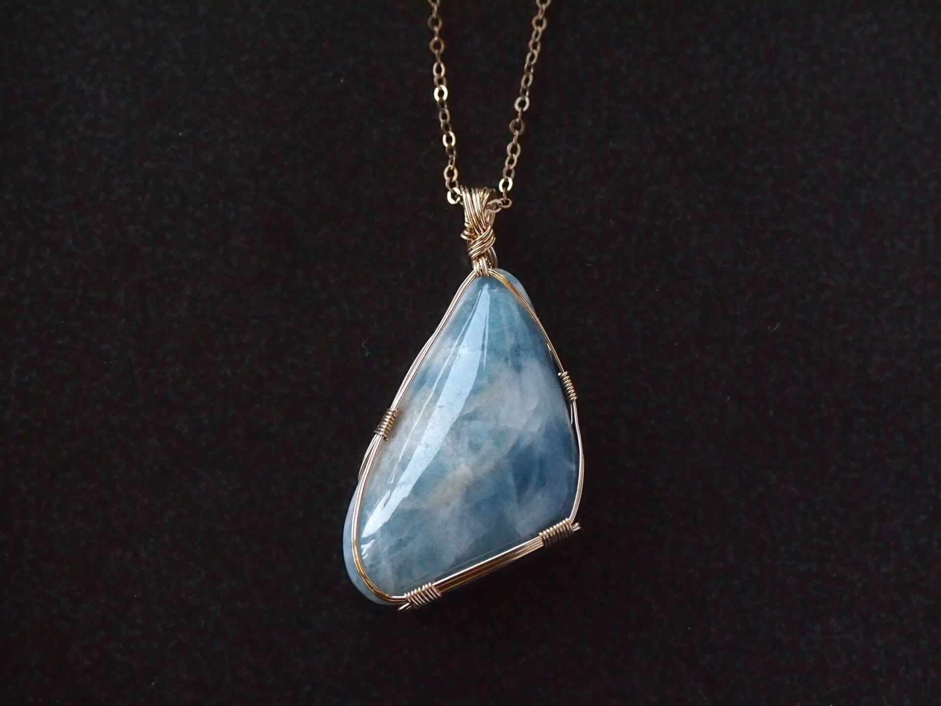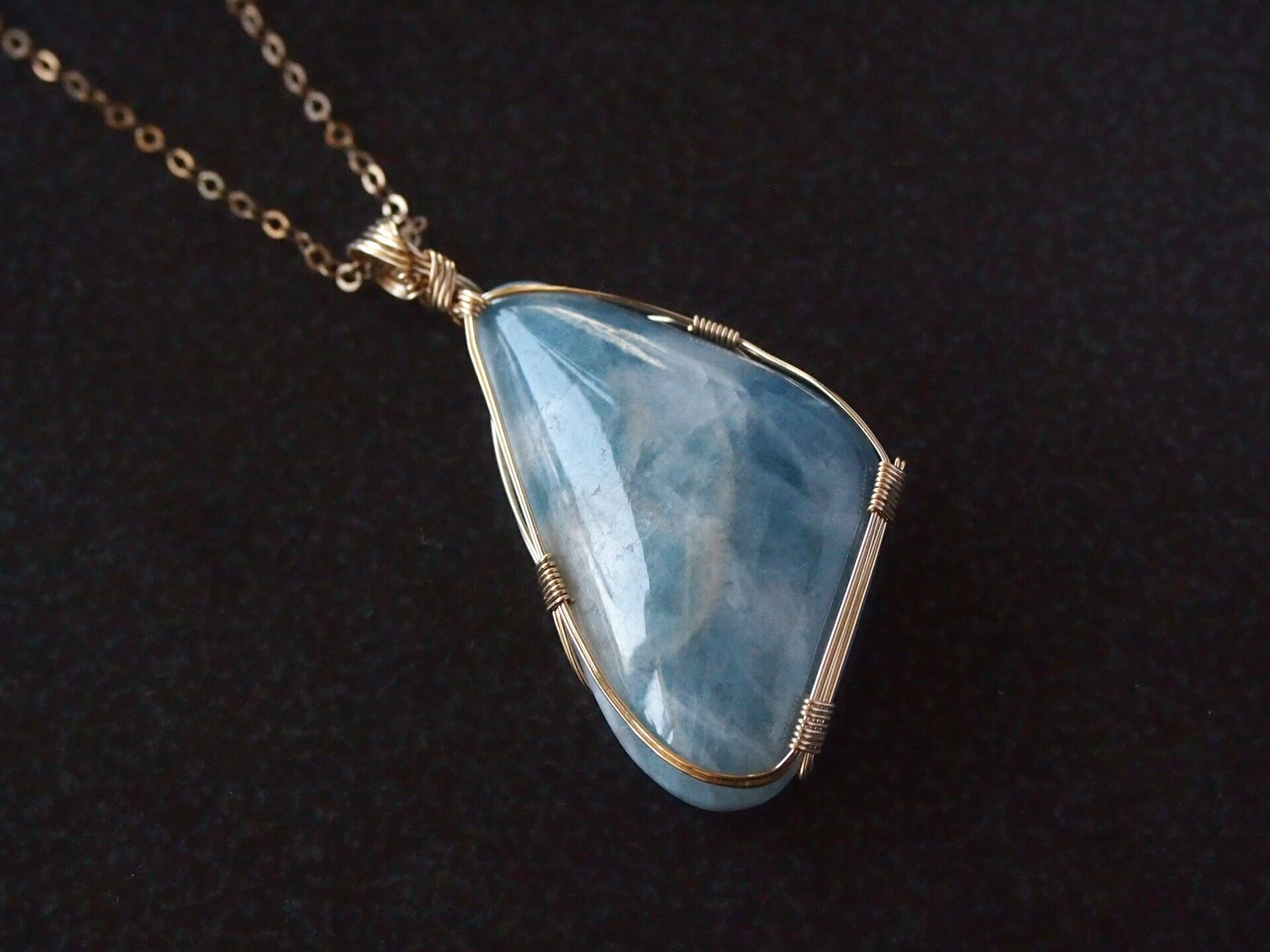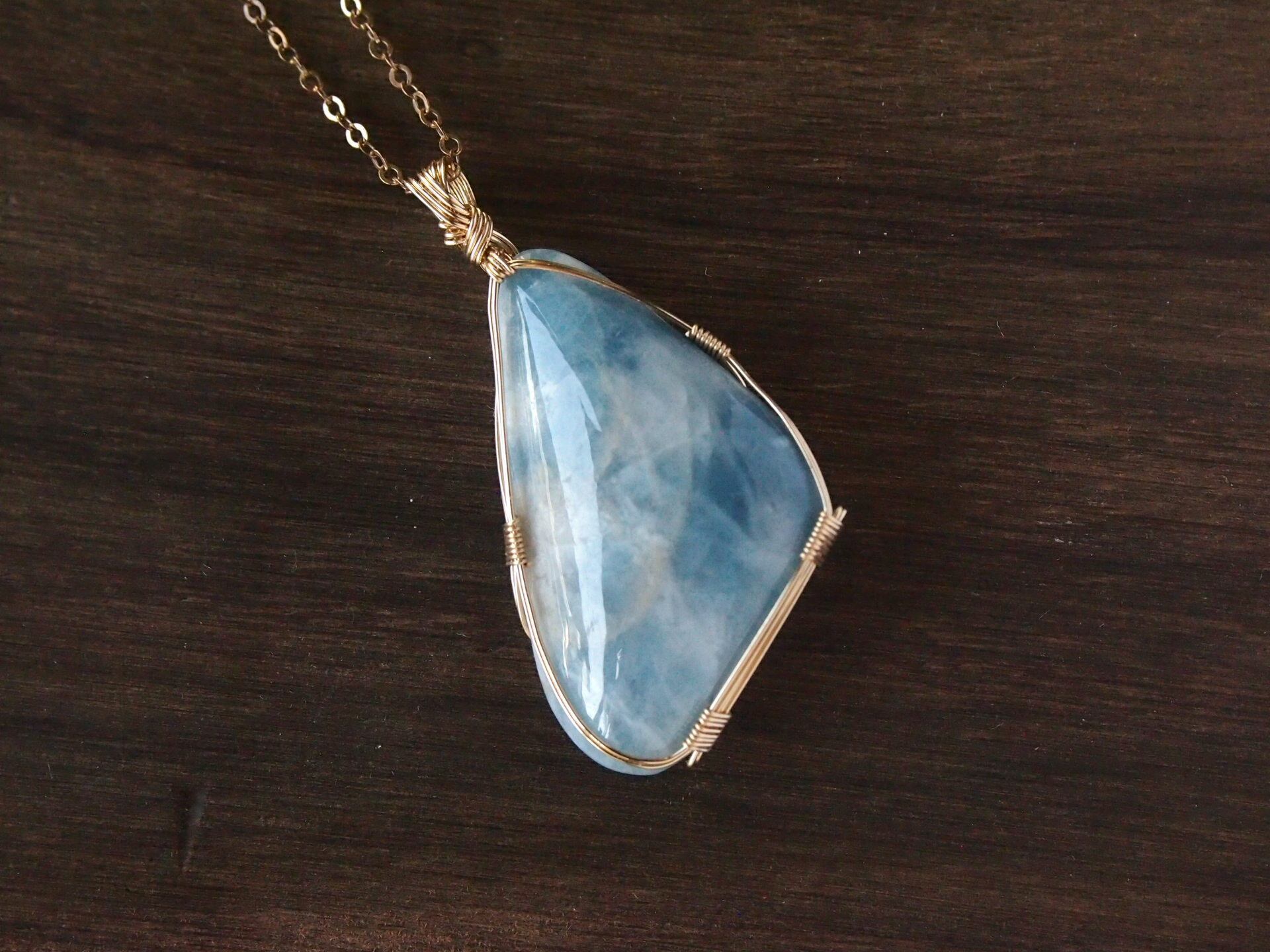 コン沢産の貴重な青翡翠を14kgfワイヤーで繊細に女神巻き®ペンダントトップに仕上げました♡
