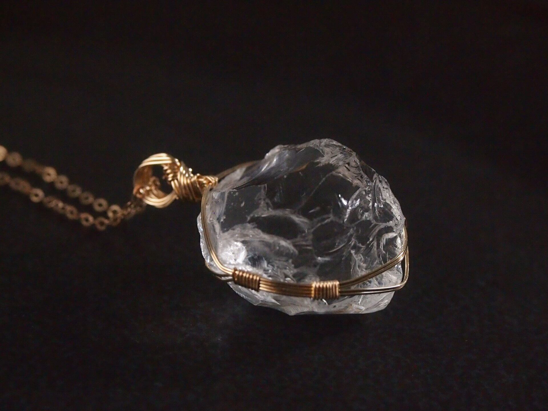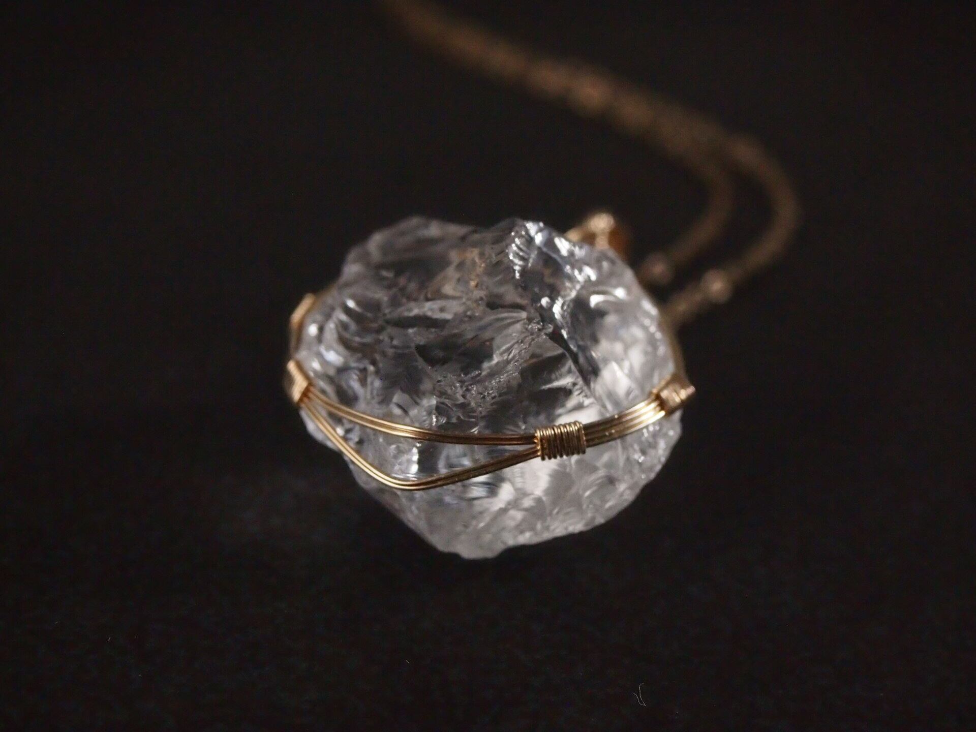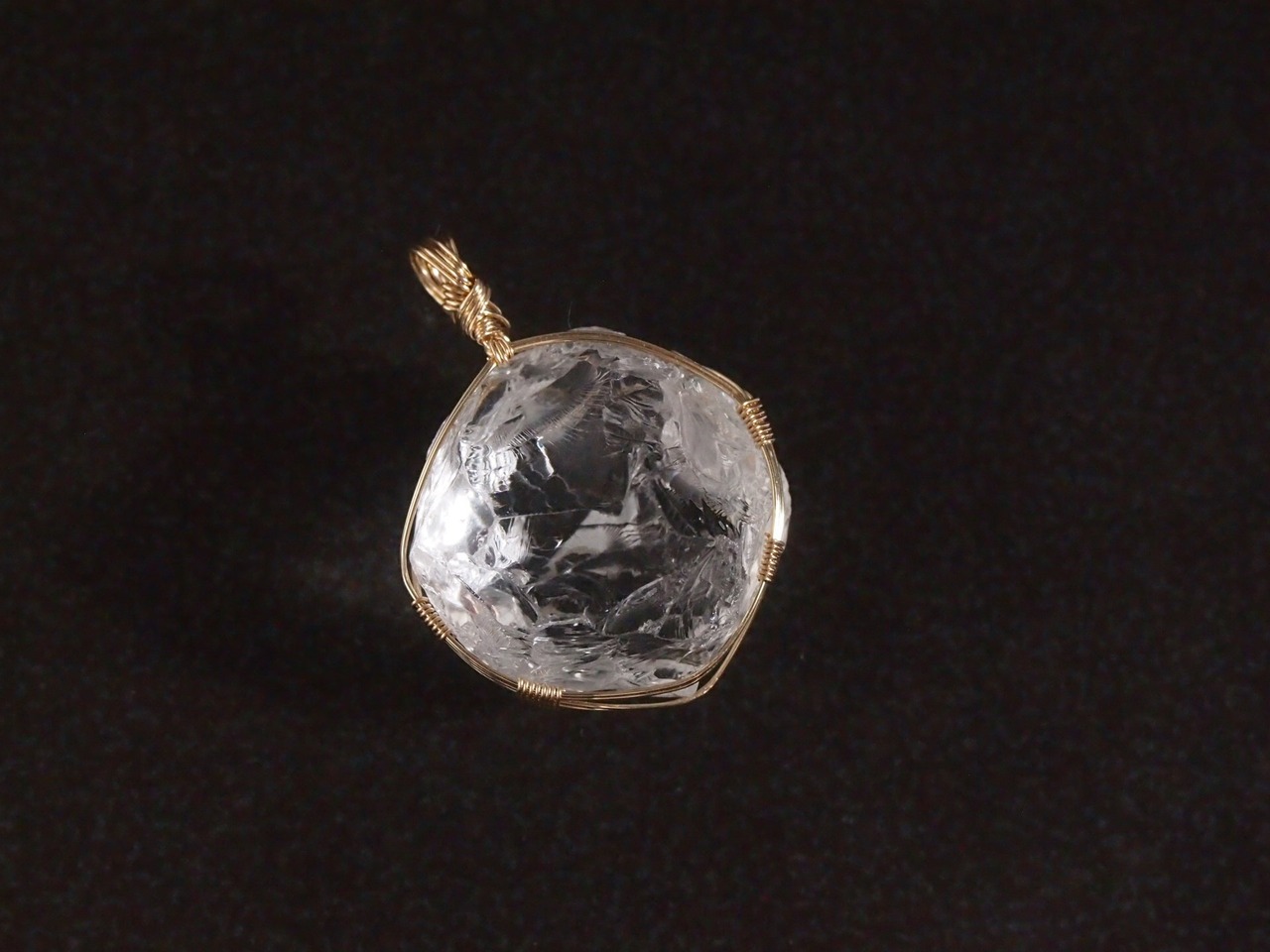 日本の職人さんが仕上げた、透明なかっこみ水晶を14kgfワイヤーで繊細に女神巻き®ペンダントトップに仕上げました♡