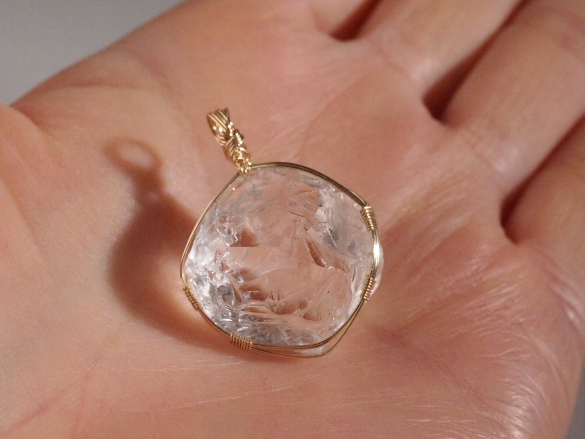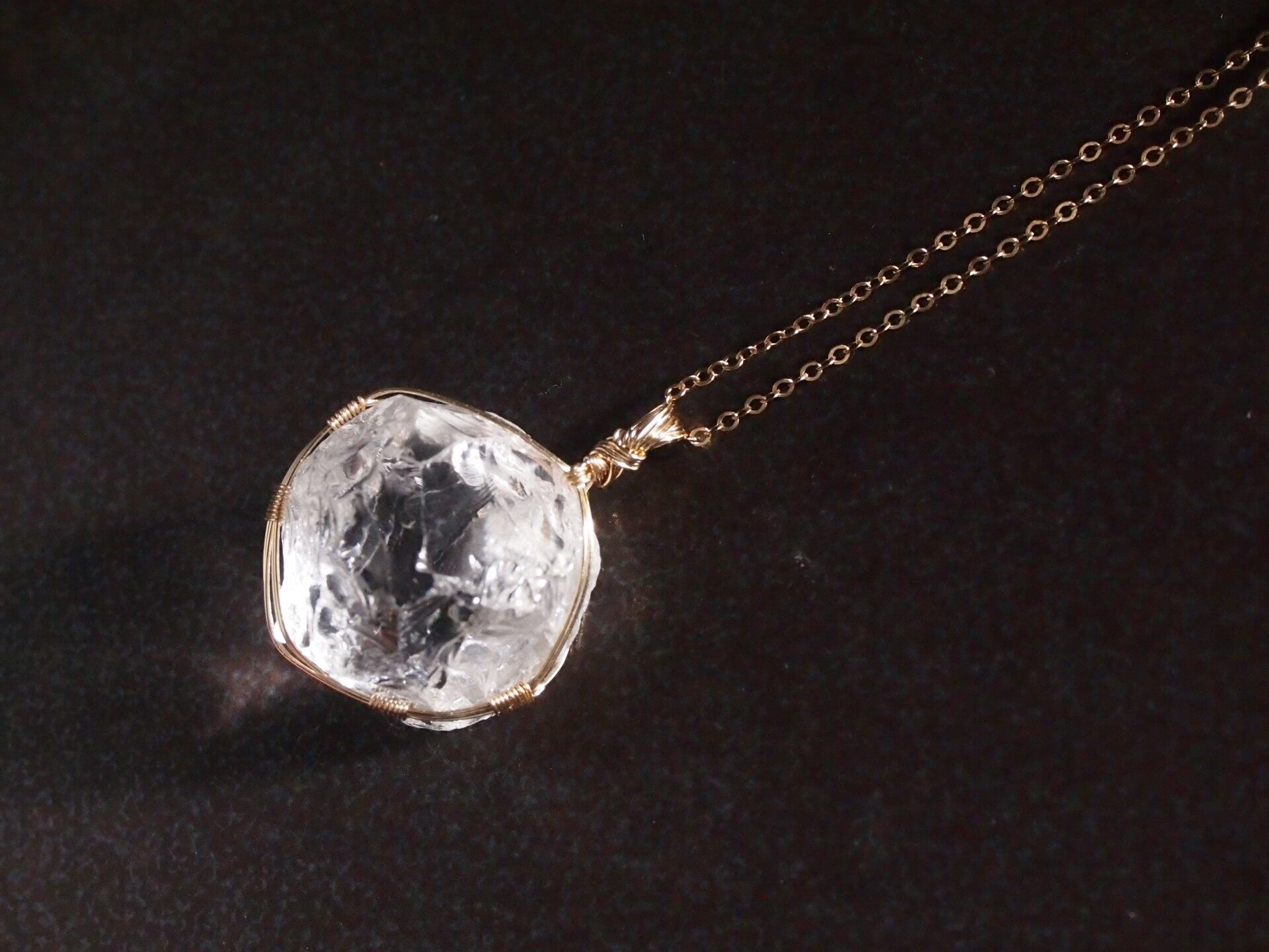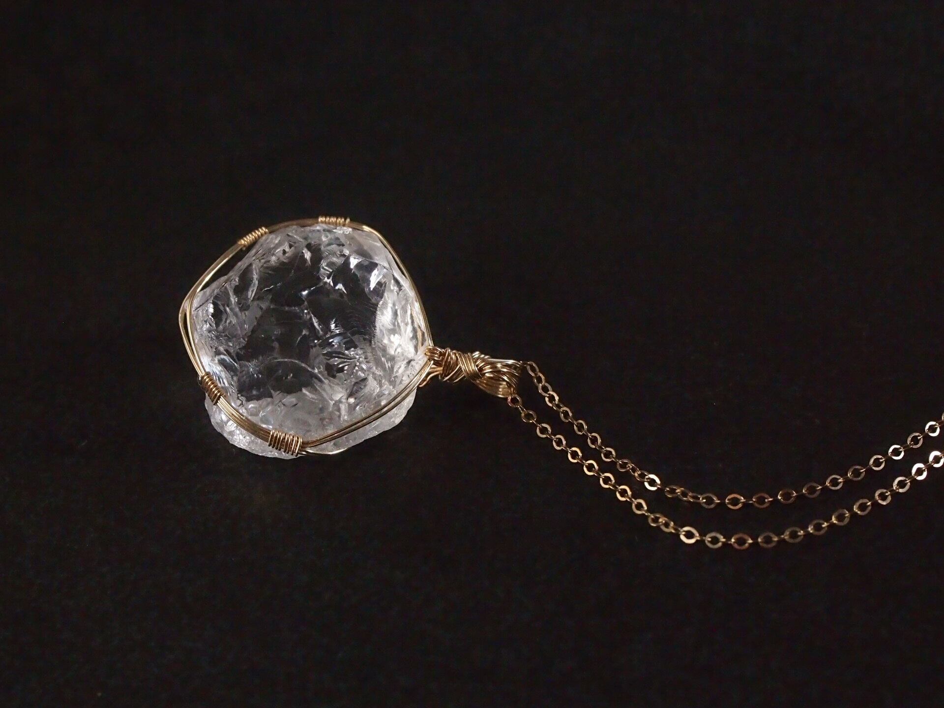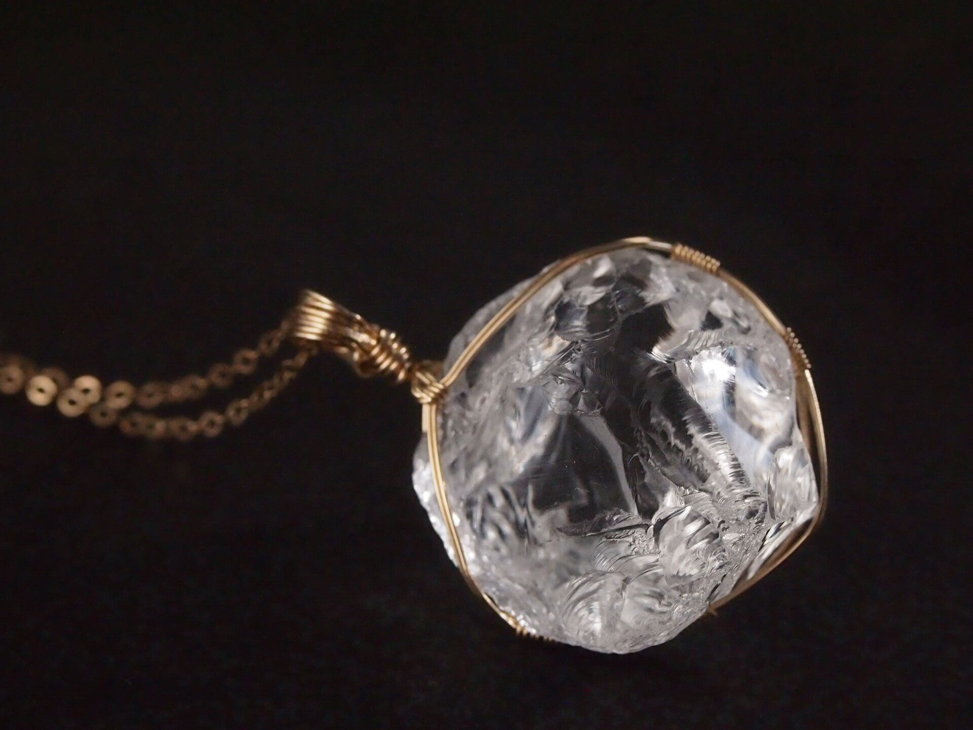 日本の職人さんが仕上げた、透明なかっこみ水晶を14kgfワイヤーで繊細に女神巻き®ペンダントトップに仕上げました♡
